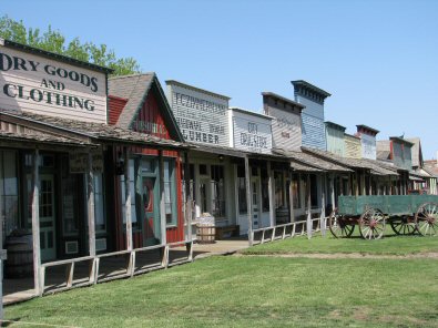 Dodge City is a bit of a disappointment. Although the shop frontages and boardwalk in the vicinity of Boot Hill have been given a passing resemblance to our image of a 19th Century frontier town, when I get there at 3pm on a Sunday, everything is closed, and the only signs of life are some oddballs cruising up and down in their idea of hot-rods and scooters, trying to leave tyre burns (without much success). Probably no bad thing the shops are shut, as they seem to be an eclectic mix of cheap souvenirs and mexican-to-go...