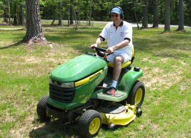 Not yet here 24 hours, and already Kara has Mr T working on the land. Bart has shown himself to be generous spirited, and also very bright, in choosing an up-market mower with such light handling that his wife can drive it... (Now why didn't that occur to me?) |